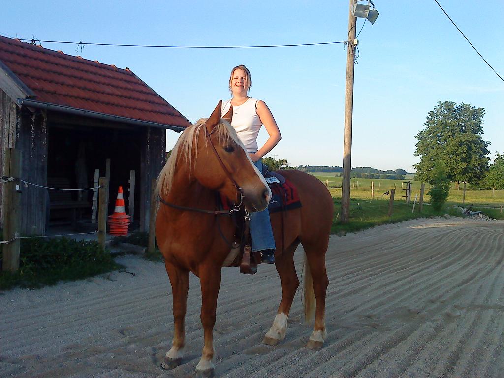 also mein pferdchen heißt Bubi, er ist ein arabo-haflinger ca. 1,55m groß und hat am 01. Mai 1995 in jandlsbrunn das licht der welt erblickt. mit ca. 2,5 jahren wurde er von der familie obermeier gekauft und war das pferd der tochter sandra, er hat eine englische ausbildung in dressur und spirngen bis A genossen. an dem stall gab es leider ein paar probleme, also wechselte bubi mit zwei (pferde)freunden in einen eigenen stall für die drei direkt am haus der familie. hier wurde er zwar weiterhin gut behandelt, aber leider wurde sein können nicht mehr gefördert. im April 2005 kam ich dazu, ich hatte ihn als rb, war aber nicht glücklich mit ihm, er hat gebuckelt ist nur durch gegangen - bis ich zum schluss angst vorm galoppieren hatte, aber sein süßer blick... also habe ich weiter gemacht, dann halt ohne galopp... im märz 2006 teilten mir die besitzer mit, dass alle drei pferde verkauft werden, und ich sollte es mir doch überlegen ob ich ihn kaufen möchte, naja gut ich da 17 hab mehr oder weniger grad die ausbildung angefangen und halt nicht viel verdient. also habe ich erstmal mit meiner mama gequatsch, die zu meiner verwunderung auch noch ja gesagt hat, mit einer bedingung, ich muss alles selber bezahlen, TA, Hufschmid, stallmiete, etc.! bestimmt, das geht schon irgendwie