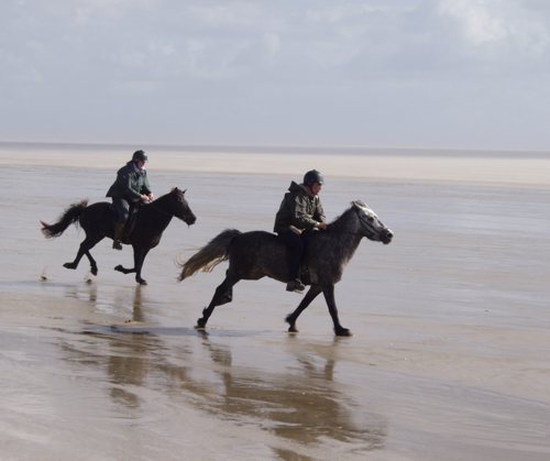 So, dann mach ich mal weiter. Ich bin 13 Jahre alt und komme aus dem Osten Schleswig-Holsteins. Ich habe (leider) kein eigenes Pferd. Ich reite seid ca. 6 Jahren und im moment leider garnicht, da es Probleme mit dem Reitstall gab bzw. gibt und bin also noch auf der Suche nach einem geeigneten Reitstall mit Pflegepferd Wenn ich dann reite dann am liebsten Dressur, gegen Springen hab ich aber auch nichts. Die Pferde die ich am meisten geritten bin sind deutsches Reitpferd, Haffi und deutsches Reitpony. Wenn ich auf Römö bin, reite ich dort auch jeden Tag. Wer seinen Urlaub auf Römö plant vllt. mit Pferd kann ja mal kurz schreiben. Eventuell kann man dann zusammen ausreiten. Achja, auf dem Bild ein kleiner Ausschnitt, was man mit Pferd auf Römö erleben kann. Ich selber bin auf dem Bild leider nicht, das vordere ist aber Betty, mein Reitpferd wärend des Urlaubs  So, das waren jetzt Infos über mich, jetzt alle weitermachen