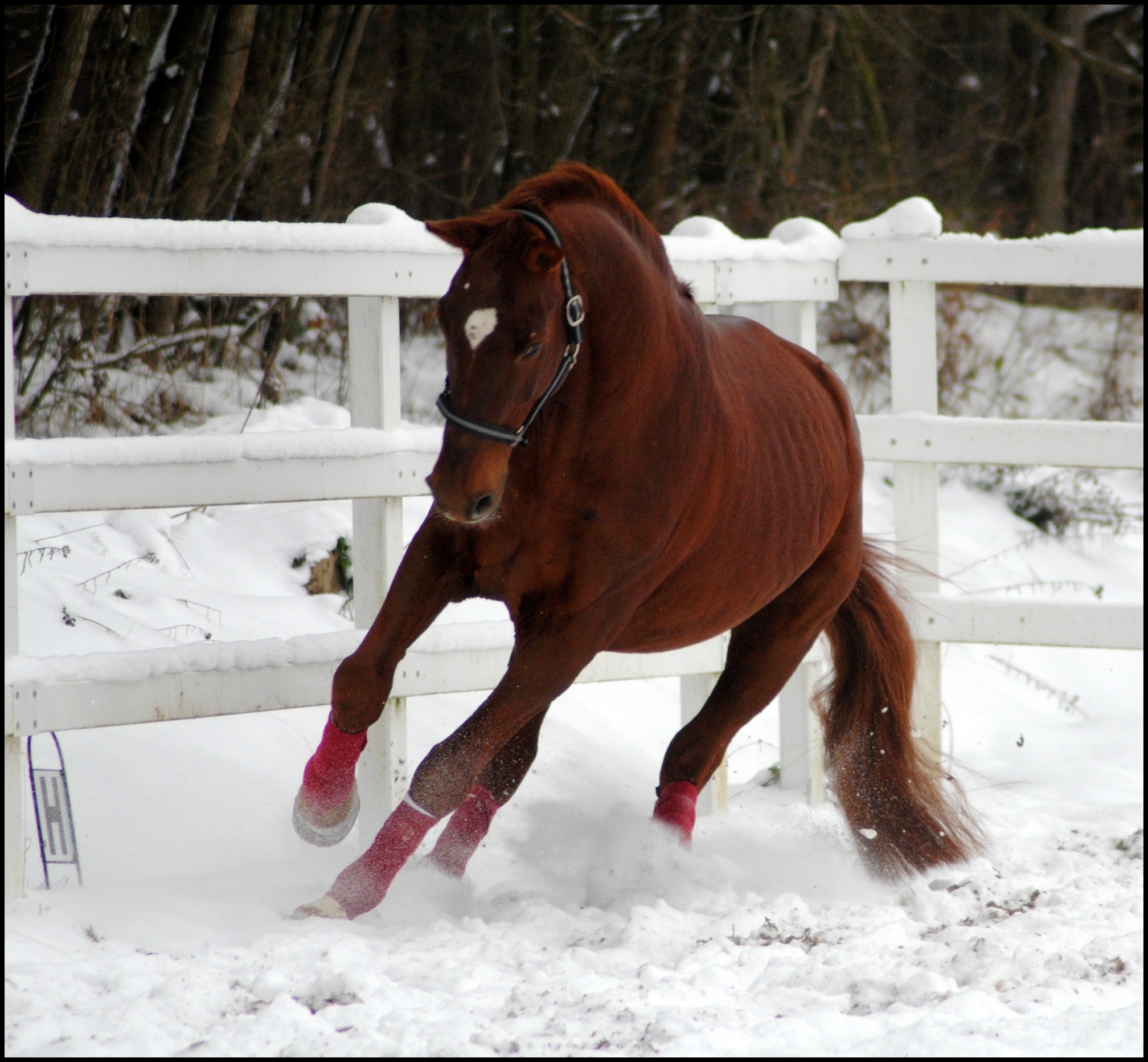 mein Gino liebt Schnee...die Tage waren wir im Gelände und er war kaum zu halten. Hier ein Beweiß, wie wohl er sich fühlt Die Kunst des reitens liegt darin, sein Pferd so zu motivieren, dass es glaubt dass es das was es macht tatsächlich selber will.