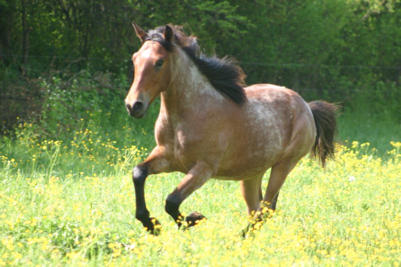 Einmal ohne Reiter unsere Kleine im Sommer 2011 (wird jetzt 3 und kann eingeritten werden :)
