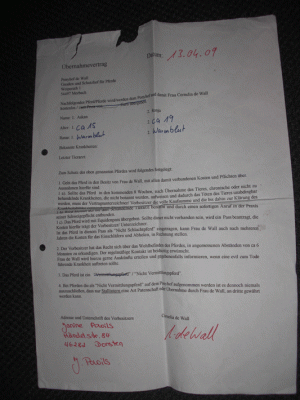 Ebenfalls ist bei Frau de wall auf dem vertag auf einmel nichts mehr durchgestrichen wenn es doch vermittlungspferde seien sollen sollte das NICHT vermittlungspferde gestrichen sein ist es nicht ich finde es eine frechheit und eine beleidigung !