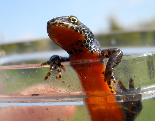 Das ist momentan mein Lieblingsbild. Es zeigt einen Bergmolch den ich beim Saubermachen unseres Gartenteichs fand. Was du liebst, lasse frei...
