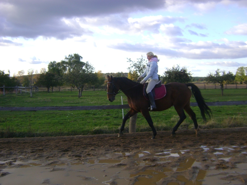 Sarah hat geschrieben:Zuerst: Auf dem Reitbild läuft sie zu eng, da kann keine aktive HH sein. Zum Problem: Funi hatte am Anfang eine verkürzte HH-Muskulatur, die ich über ein paar Wochen täglich gedehnt habe. Außerdem helfen viele, viele Seitengänge, flottes Vorwärtsreiten (kein Rumgerenne!) und eben viele Stangen o.ä.. Außerdem keine graden Linien, immer möglichst auf gebogenen Linien arbeiten. Wenn du sie longierst hilft es oft, die Pferde immer wieder mit dem Peitschenbändsel an den Fesseln zu touchieren (also wirklich nur da langstreifen lassen, nicht hauen etc.), damit sie ihre Füßchen nicht vergessen  .