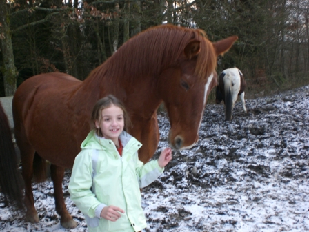 Sie läuft momentan barfuß, wegen dem schnee. Sonst hat sie nur vorne eisen (kaltbeschlag). Sie ist absolut schmiede und verladefromm. Sollte etwas nicht auf anhieb klappen lässt sie sich ganz leicht mit futter überzeugen!